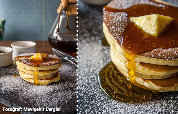 Happy Pan’in pancakeleri çoğu tatlıya meydan okur! Bu kadar net söylüyorum. Ağzınıza attığınızda çocukluğunuza geri dönüyorsunuz, Pancake’de çok özgürsünüz, kendinize tatlı, tuzlu alternatifler üretebilirsiniz. Hiç rahatsız etmeyen, yumuşacık mis gibi bir kokusu var. Pancake’i özellikle elime alıp salladım; ne bir çatlama, ne de sönme oldu. Uygulanan tarif muazzam. Midesi hassas olanlar ve kokuya önem verenler bana hak vereceklerdir. Mesela Waffle’da çoğu zaman ağır bir koku vardır ve yedikten sonra midemi yaktığı çok olur.